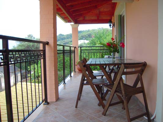 Gardiki apartment is located at the first floor of the amphitheatric complex, it has two bedrooms and a common veranda at the front of the house with view the sea the garden and the mountains of the area. It is 65m² and offers: