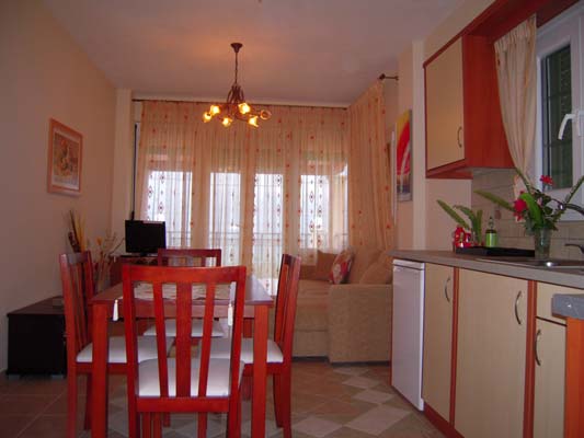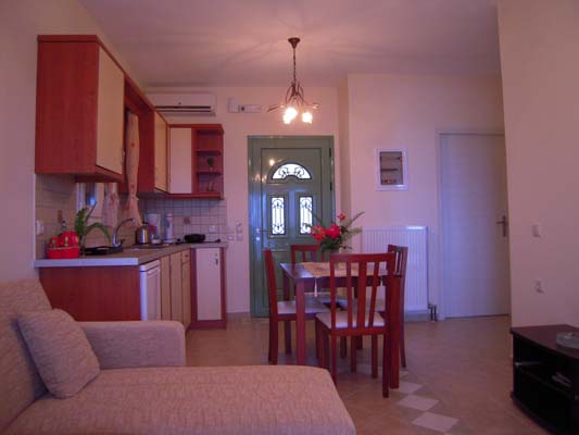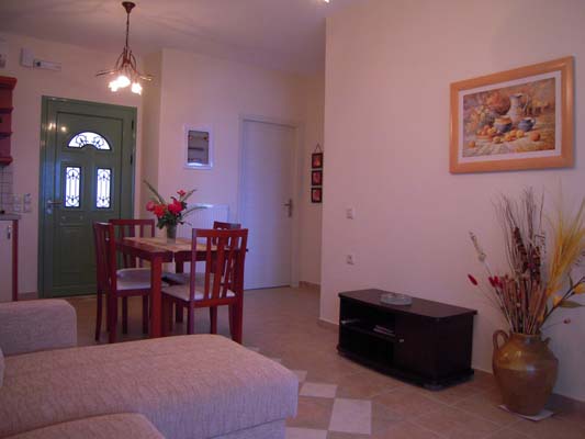 Maltaouna apartment is located at the second floor of the amphitheatric complex. It has two bedrooms, a living room and a dining room at a common place. The forward veranda offers a great view to the sea, the mountains of the area and the garden. From the rear balcony you can see the hill with the olive groves located at the rear of the house. It is 90m² and offers: