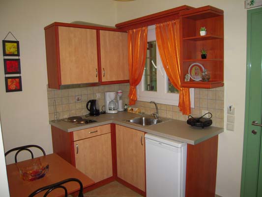 Agallis studio is located at the first floor of the amphitheatric complex with a balcony at the rear of the house looking the rear garden and the olive groves. It is a two rooms studio, approximately 35m² and offers: